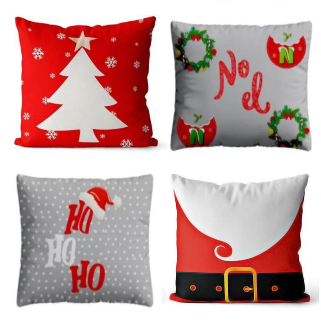 Kit 4 Capa De Almofadas Decorativa Sofá Feliz Natal ho ho ho 45x45