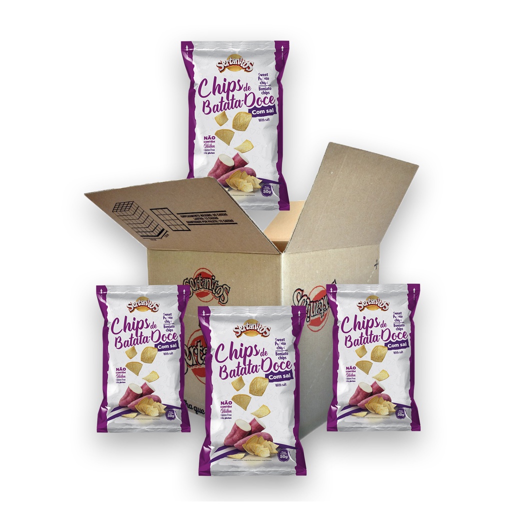 Chips de Batata doce com Sal Sertanitos 50g - Caixa com 20 pacotes
