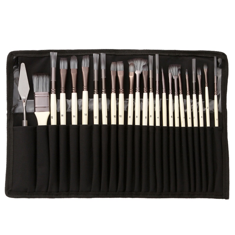 Kit 24pcs Pincéis De Pintura Para Óleo Aquarela Acrílica Guache Com Bolsa Cabelo Nylon Tubo De Alumínio
