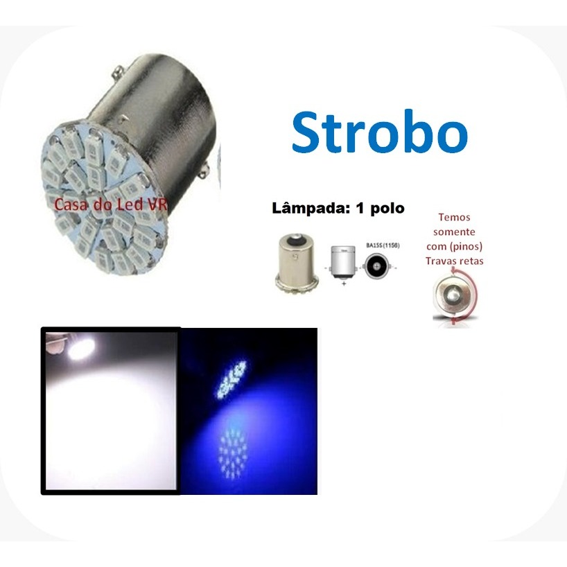1 /2 x Lampada 1 polo 22 leds STROBO FLASH AZUL ou BRANCA P21w 1156 12v