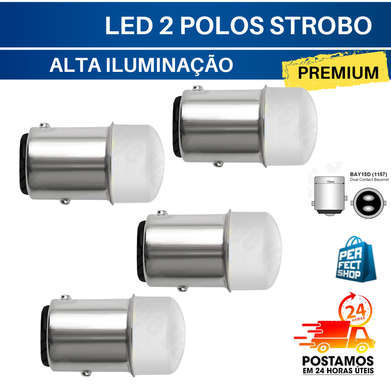 4x Lâmpada Led Ultra Forte 1 Polo, 2 Polos Branco, Ambar, Laranja. Ré BA15S P21W BAY15D P21 / 12v 5W Ultra Forte Ré, Re Freio, Lanterna