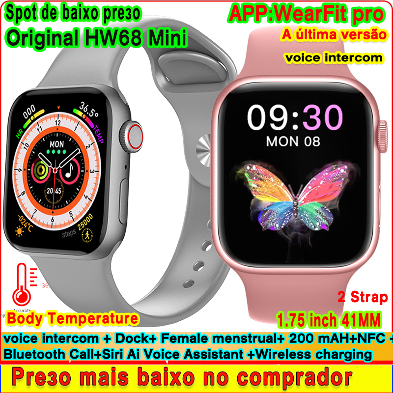 Relógio Smartwatch Original 41mm HW68 Mini Smart Watch Mulher Série 8 De 1,75 Polegadas Temperatura Corporal NFC Siri Dock iwo Pequeno