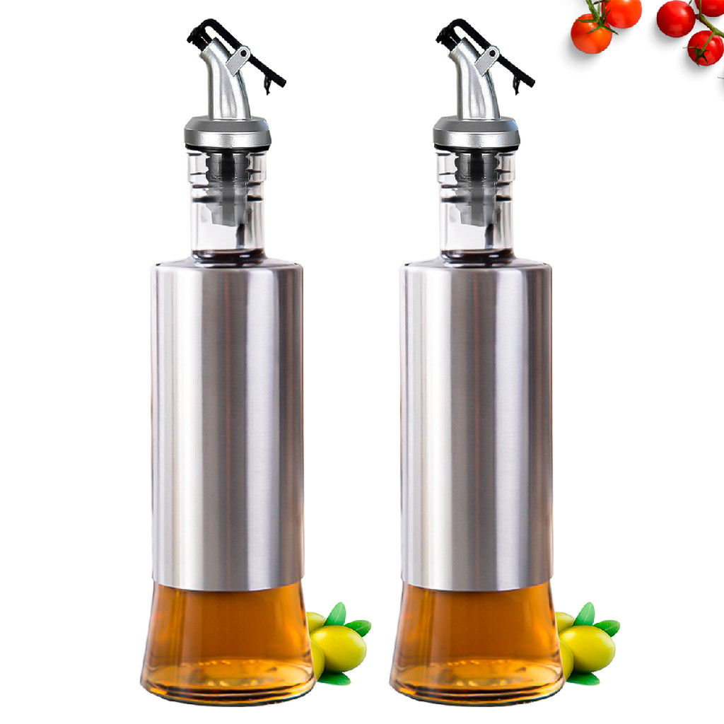 Kit 2 Galheteiro Porta Azeite Óleo Vinagre 300 ML Bico Dosador Aço Inox Vidro