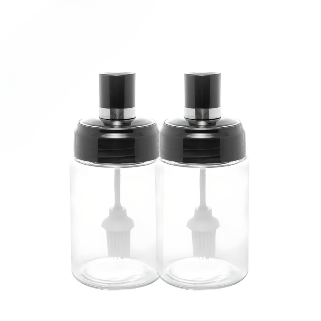 Kit 2 Porta Azeite Galheteiro Vidro Dosador Azeiteiro Vinagre Tempero Cozinha Óleo Pincel Pimenta