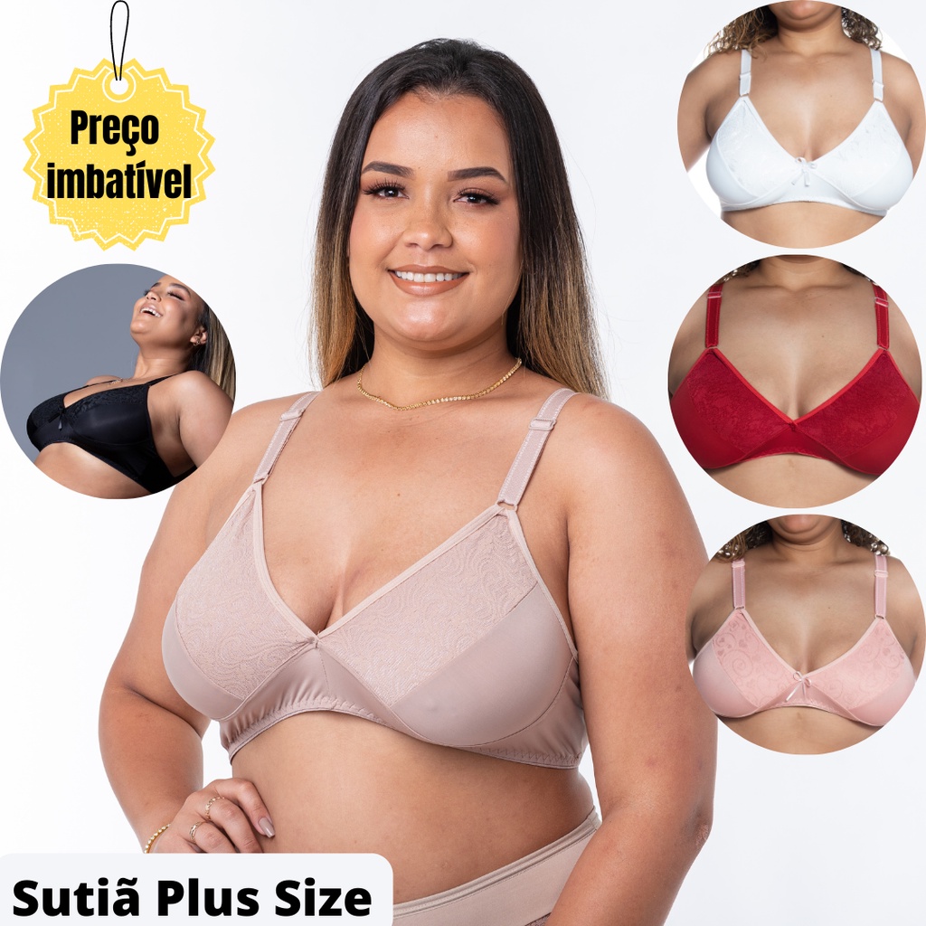 Kit 3 Sutiã Plus Size Renda Bojo Com Aro Sutia Sexy Rendado Regulagem Sutian Lingerie Luxo