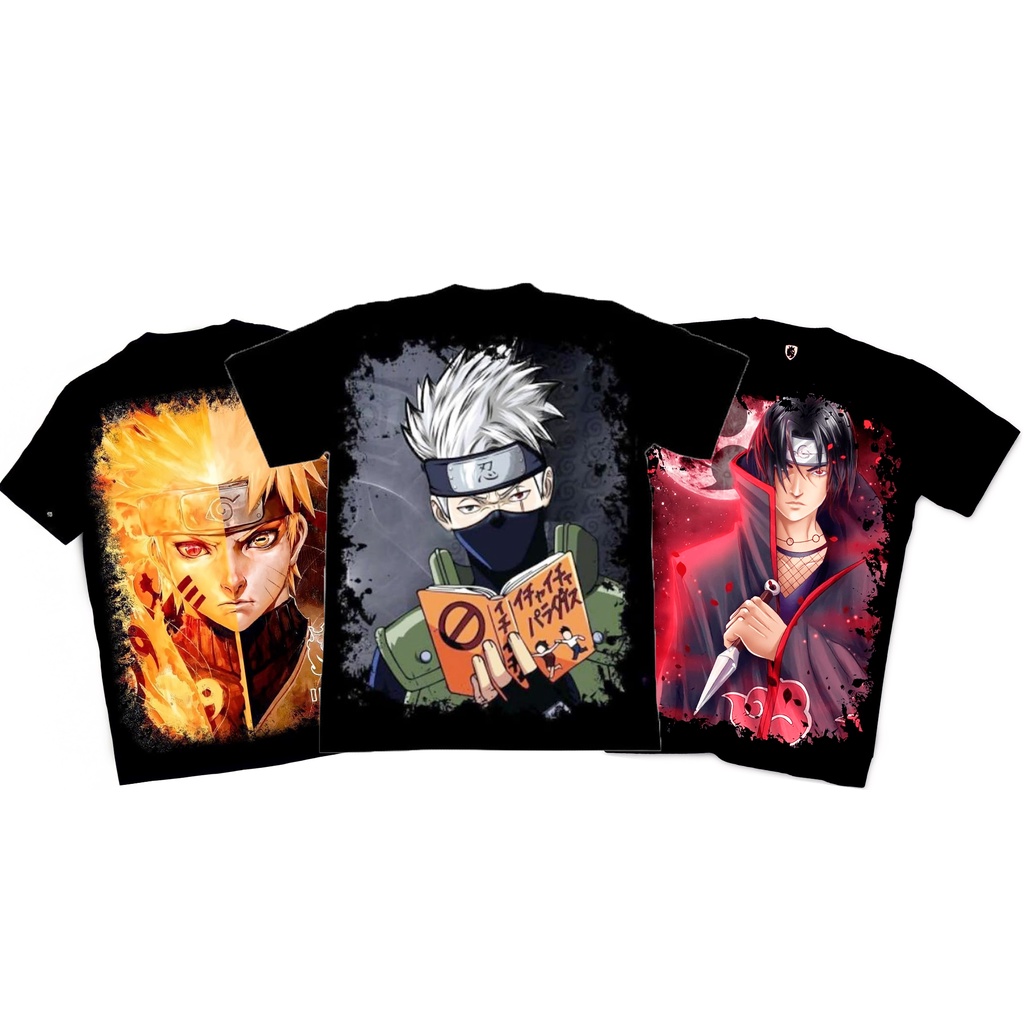 Kit 3 Camisetas Juvenil Anime Naruto Uzumaki Camisa Unissex de Crianças