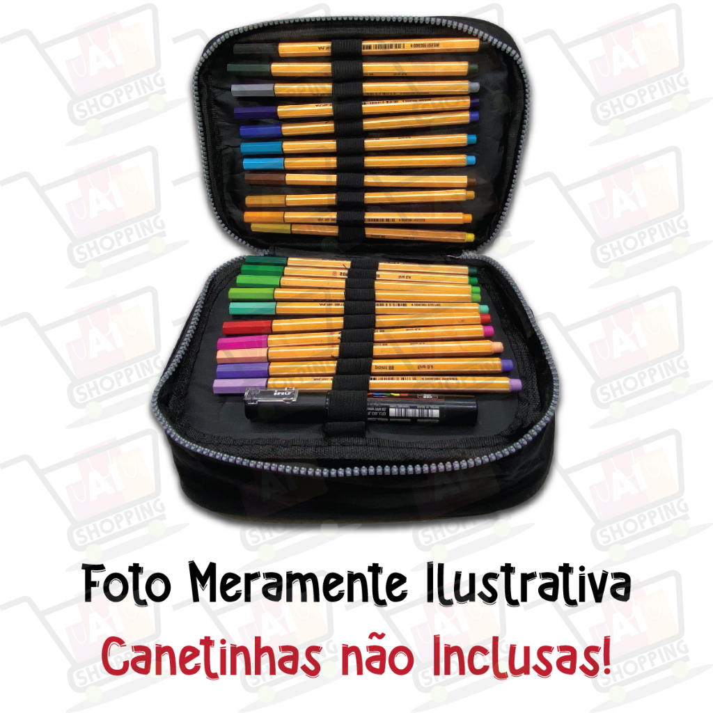 Estojo Organizador Escolar Juvenil Box Jumbo Com Alça Nylon Tactel Grande Com Divisória 100 Pens Caneta Canetinha Lápis