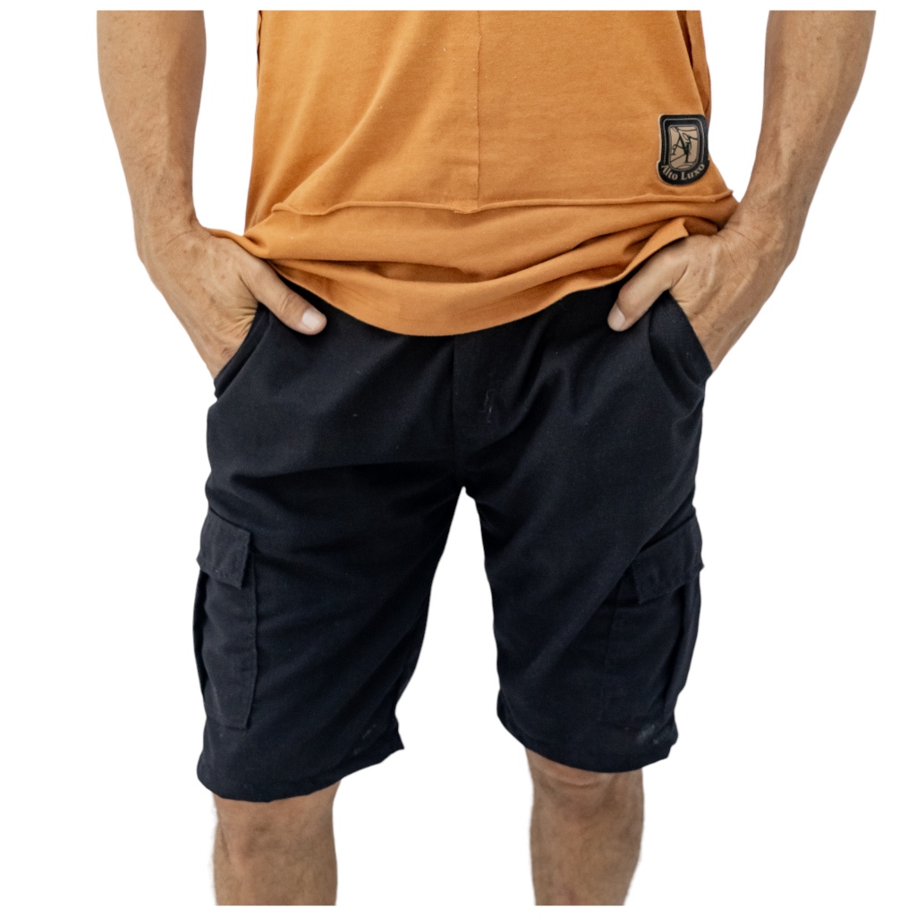 Bermuda Cargo Masculina Sarja 5 Bolsos Short Brim Com Elastico Bolso Grande