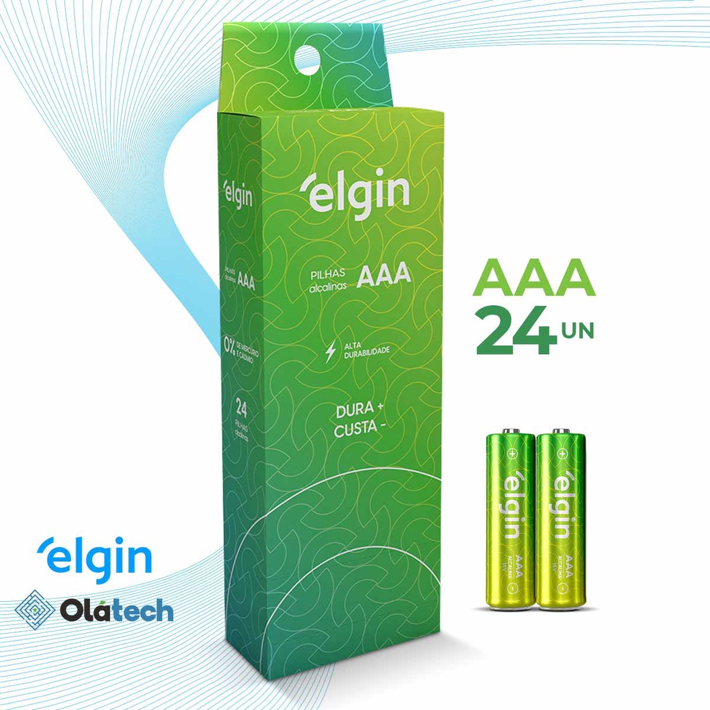 Pilha AAA Alcalina 1,5V Elgin Tubo Com 24 Pilha Palito Longa Duração