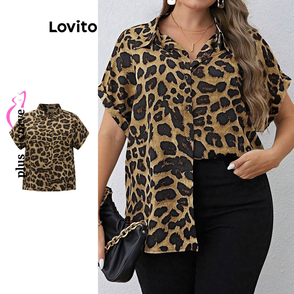 Lovito Blusa feminina casual com botão frontal plus size curva LBL14561