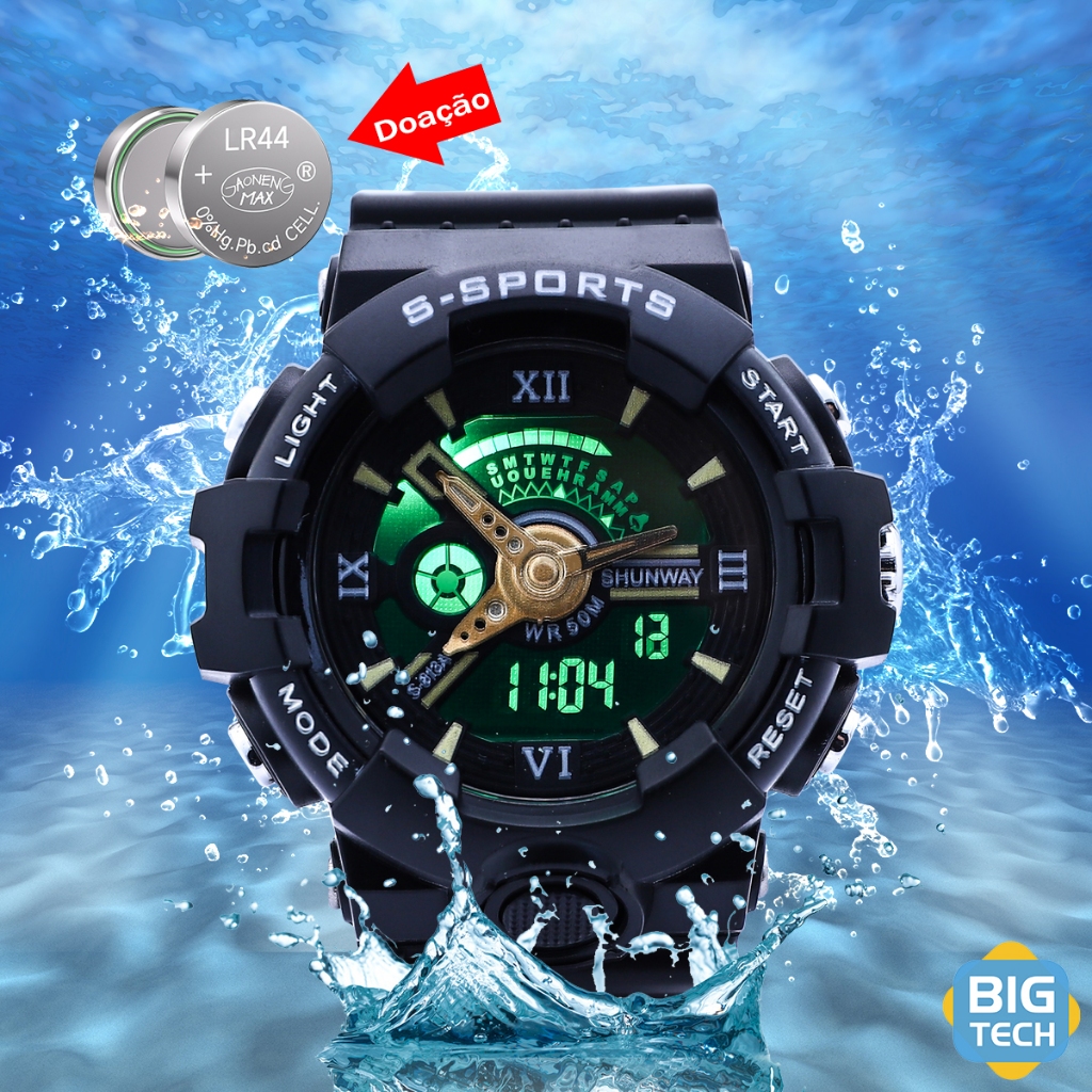 Relogio Digital Masculino Riginais Esportivo De Pulso A Prova Da Água Militar Original Preto Prata - Com Caixa S813A