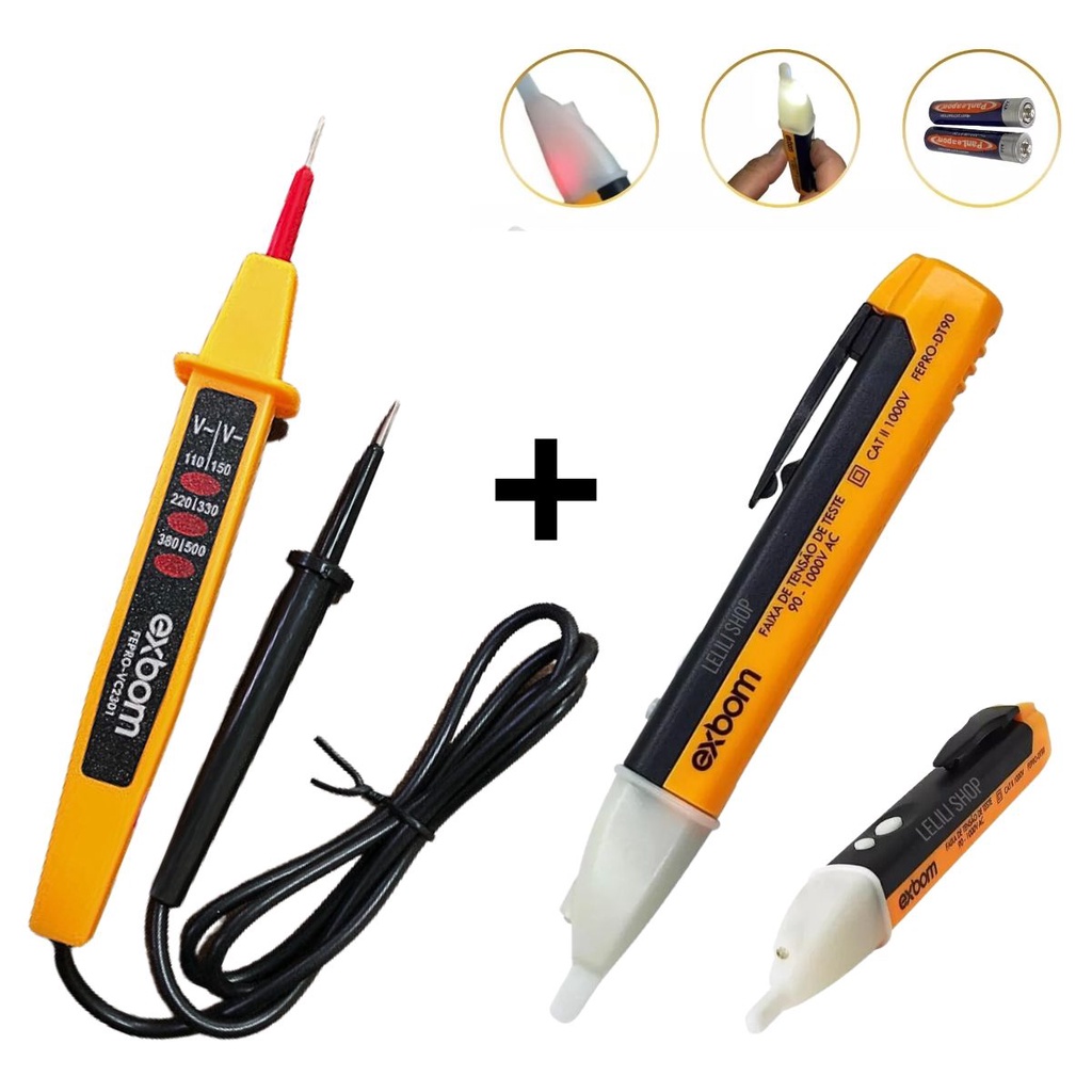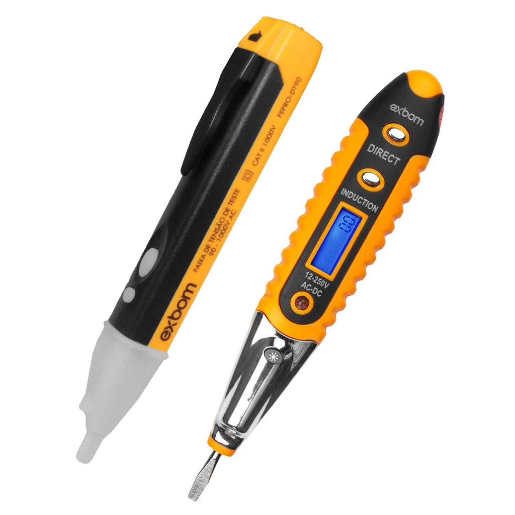 Kit Caneta Detectora de Tensão Exbom + Chave de Teste de Corrente e Voltagem Digital 12V a 250V