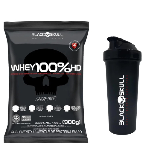 Kit 1 Whey Protein 100%HD Pote 900g Black Skull + 1 Coqueteleira 600ml