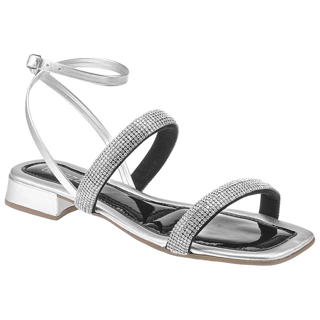Sandália Feminina Rasteira Strass Brilho Prata Salto Baixo