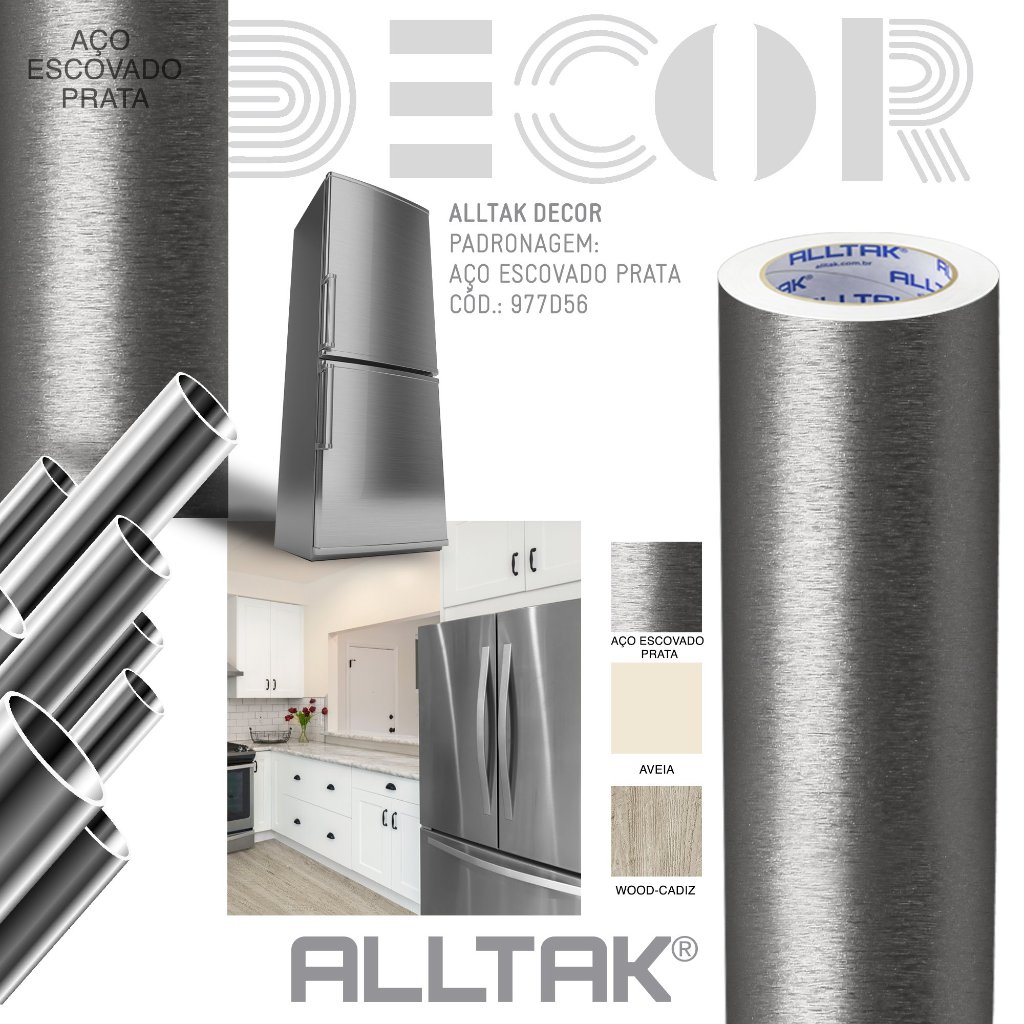 Papel Adesivo Vinil Aço Inox Prata Para Decoração Envelopamento Geladeira Fogão Microondas Armário Pode Lavar