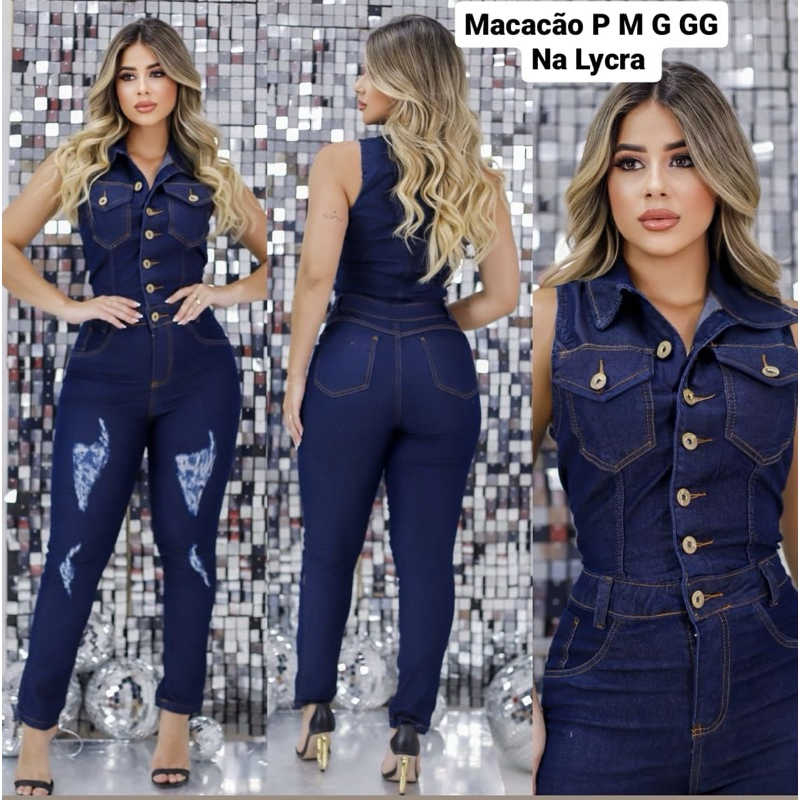 MACACÃO LONGO JEANS COM LYCRA LANÇAMENTO P AO GG