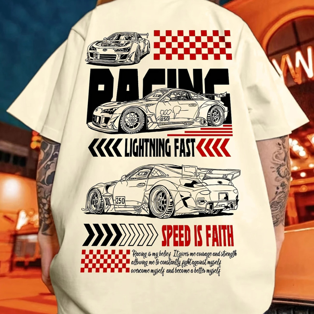 Camiseta Básica Unissex Carro Racing Lightning Fast Speed Is Faith Streetwear Jovem Lançamento Blusa 100% Algodão