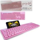Teclado Rosa para Computador Com Suporte De Celular