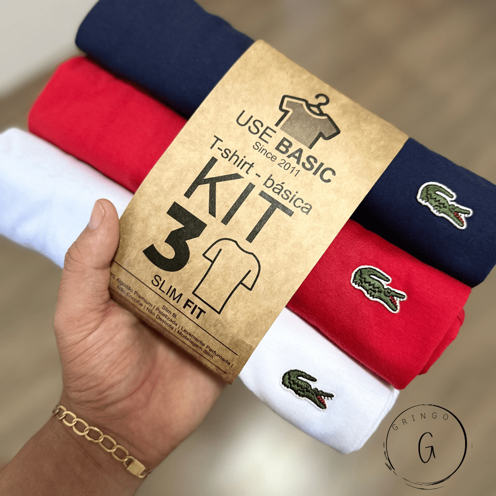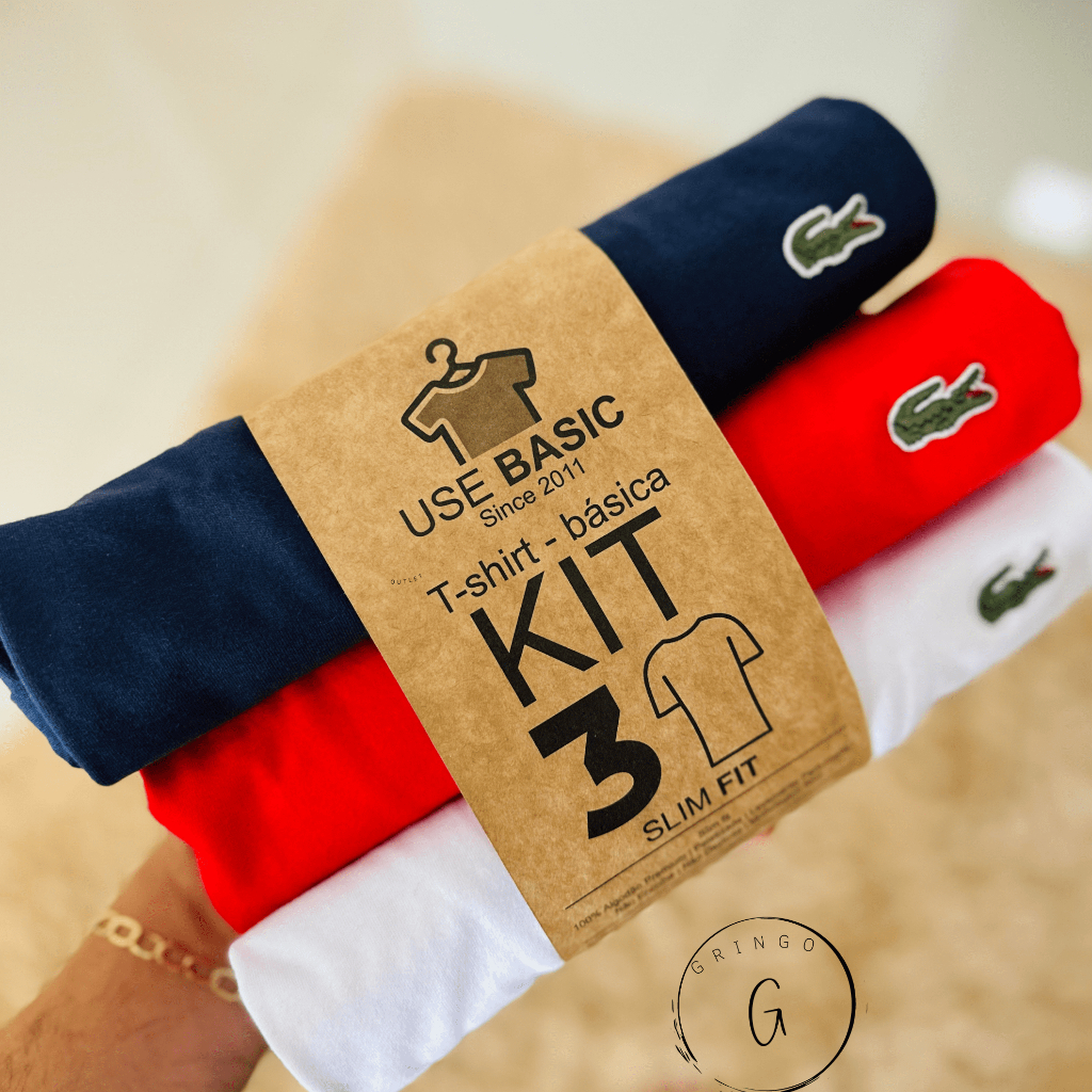 KIT 3 Camisetas Basica Lacoste Masculina 30:1 Malha Penteada Algodão