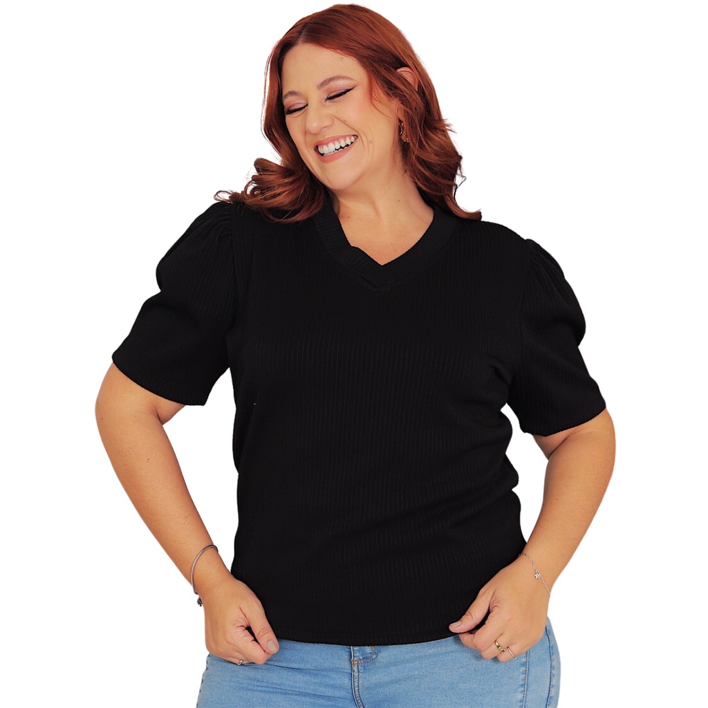 Blusa Plus Size Feminina Canelada Manga Princesa Instagram