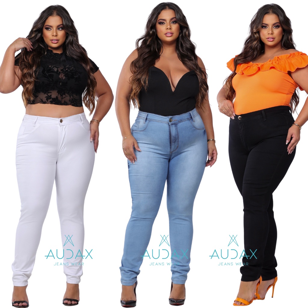 KIT 3 Calça Jeans Feminina Plus Size Cintura Alta Com Lycra Elastano Premium efeito Empina Bumbum Promoção