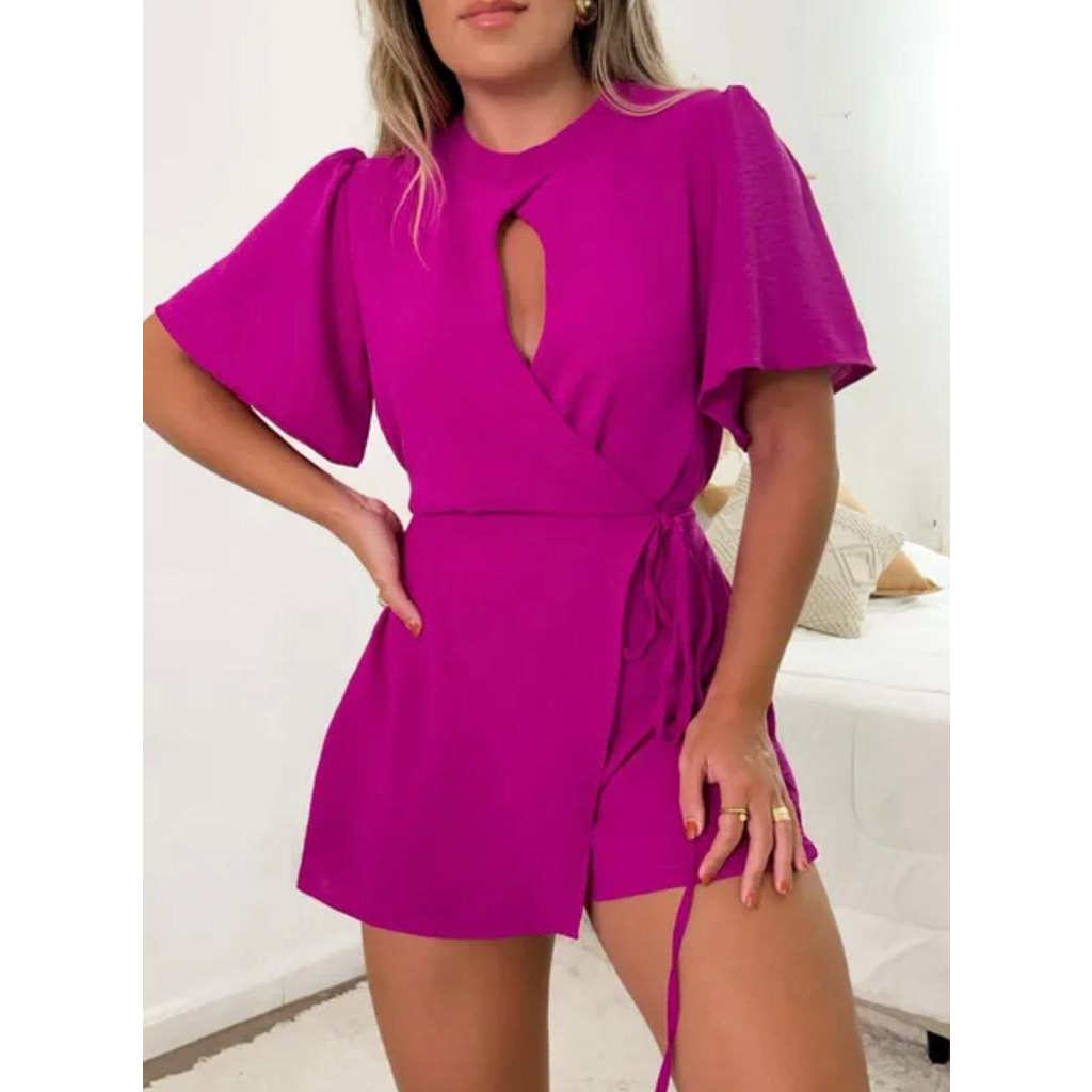 Macaquinho Feminino Curto Soltinho De Amarrar Frente Única Vestido Short Saia