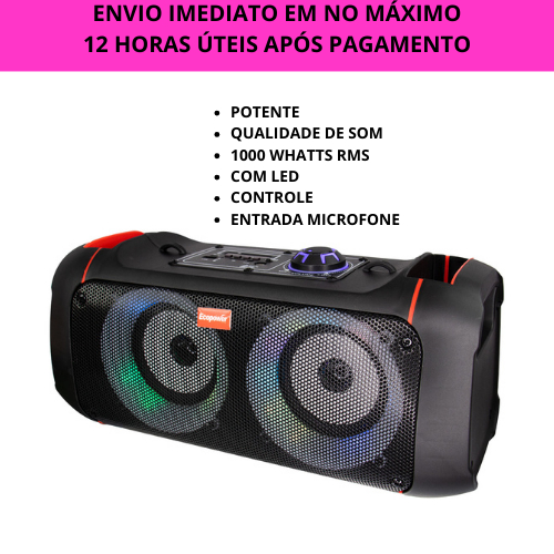 Caixa de Som Led Multimidia Speaker Ecopower EP-2306 USB/SD/AUX Bluetooth 1000W com Entrada Microfone bivolt