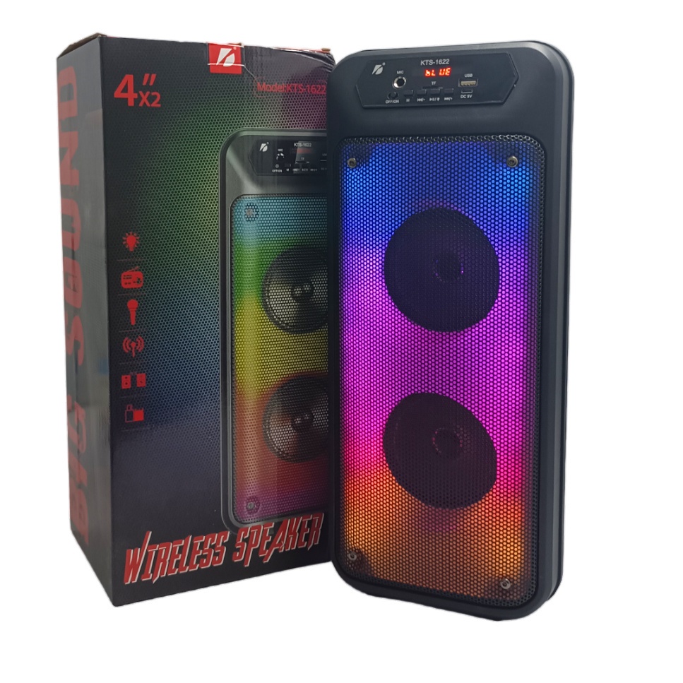 Caixa de Som Bluetooth Com LED Potente Speaker Entrada Microfone USB Micro SD Radio FM Kts 1096