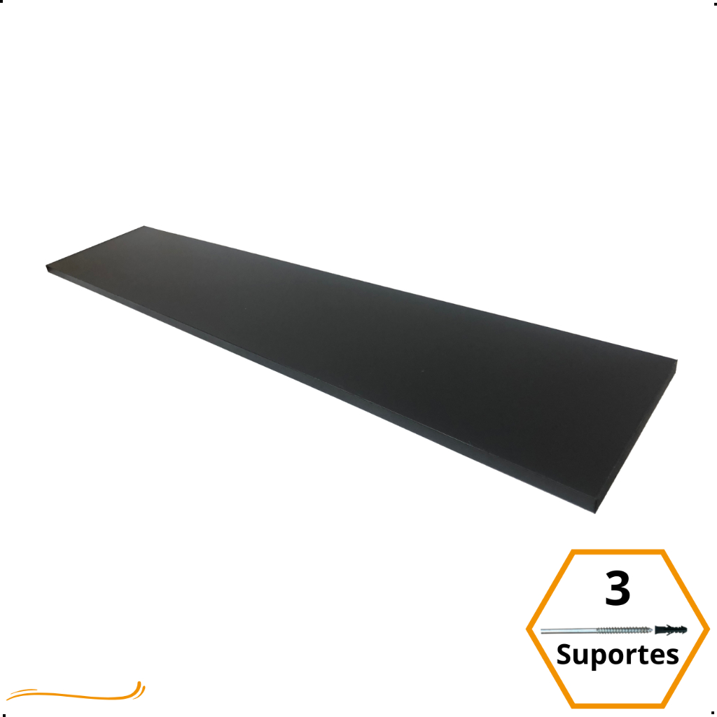 1 Prateleira 100x20 Com Suporte Invisível Flutuante Mdf Preto Organização Para Cozinha Banheiro Quarto Dormitorio Sala Lavabo Area Gourmet Escritorio Casa Lavanderia Parede Decorativa Tabua 100cm Madeira Flutuante 100 Cm x 20 Cm Preta