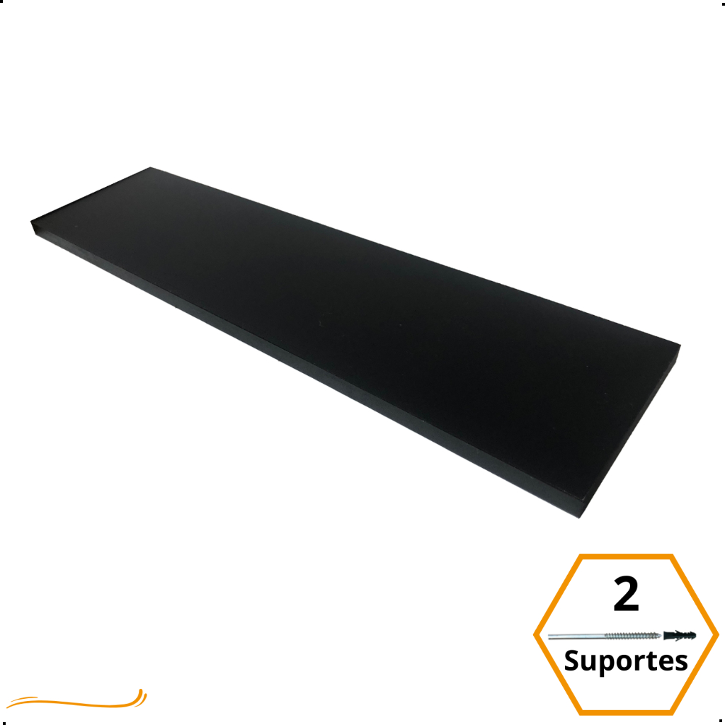 1 Prateleira 50x20 Com Suporte Invisivel Mdf Preto Organização Para Cozinha Banheiro Quarto Dormitorio Sala Lavabo Area Gourmet Escritorio Casa Lavanderia Parede Decorativa Tabua 50cm Madeira Flutuante 50 Cm x 20 Cm Preta