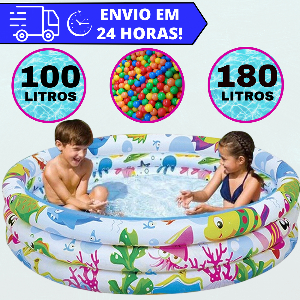 Piscina Infantil 3 Anéis 100L e 180L Inflável Para Bolinhas e Água Piscina Infantil Redonda Crianças e Bebê