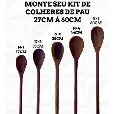 Colher De Pau Madeira Artesanal 27cm 33cm 38cm 44cm 60cm Para P/ Cozinha Colheres Bolos Doces Panela Molho Suco Mingau