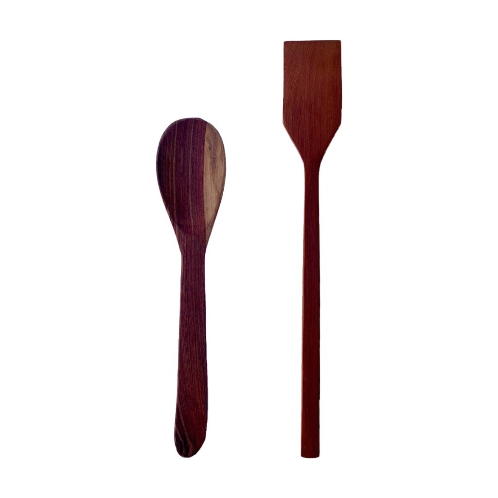 Kit 1 Colher de pau Arroz / 1 Espátula Pá de angu em madeira maciça rustica artesanal para cozinha