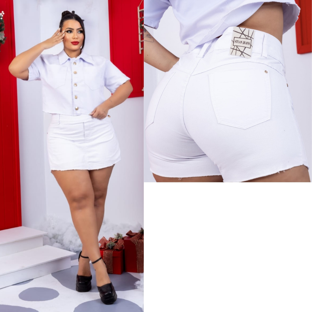 Short Saia Jeans Feminino Plus Size C/ Lycra cintura alta moda feminina