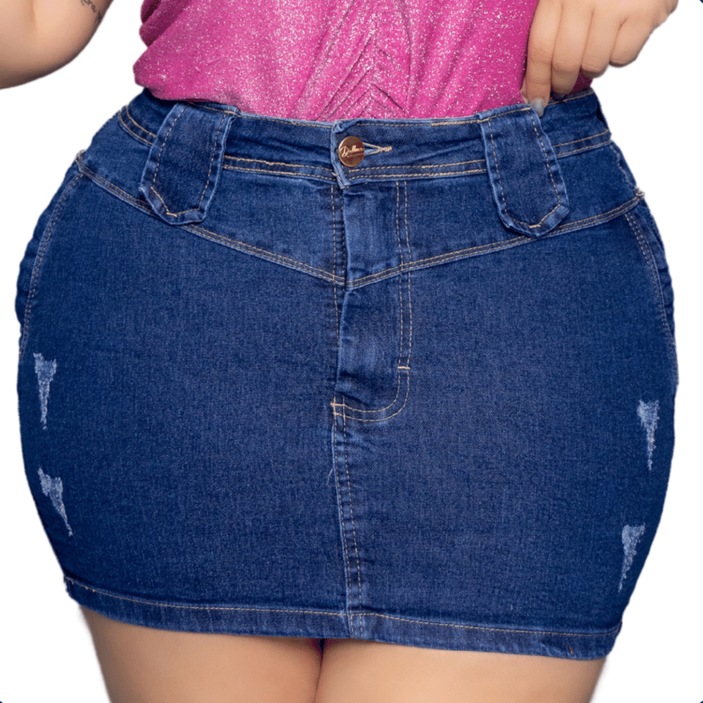 Saia Jeans Plus Size Feminina Cintura Alta Com Lycra Desfiada Destroyed Levanta Bumbum