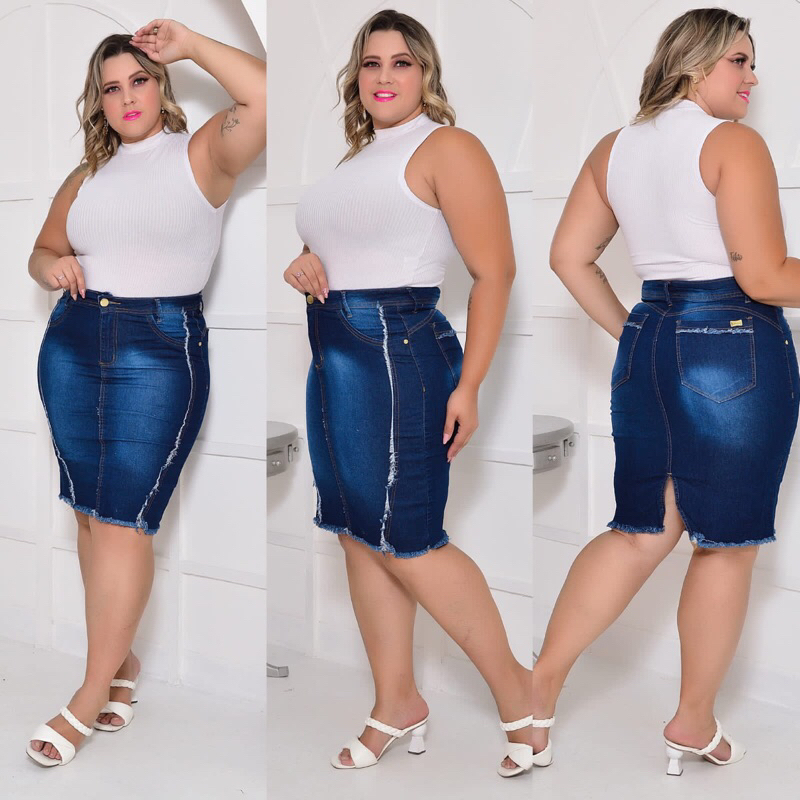 Saia jeans plus size com Lycra cintura alta do 34 ao 60