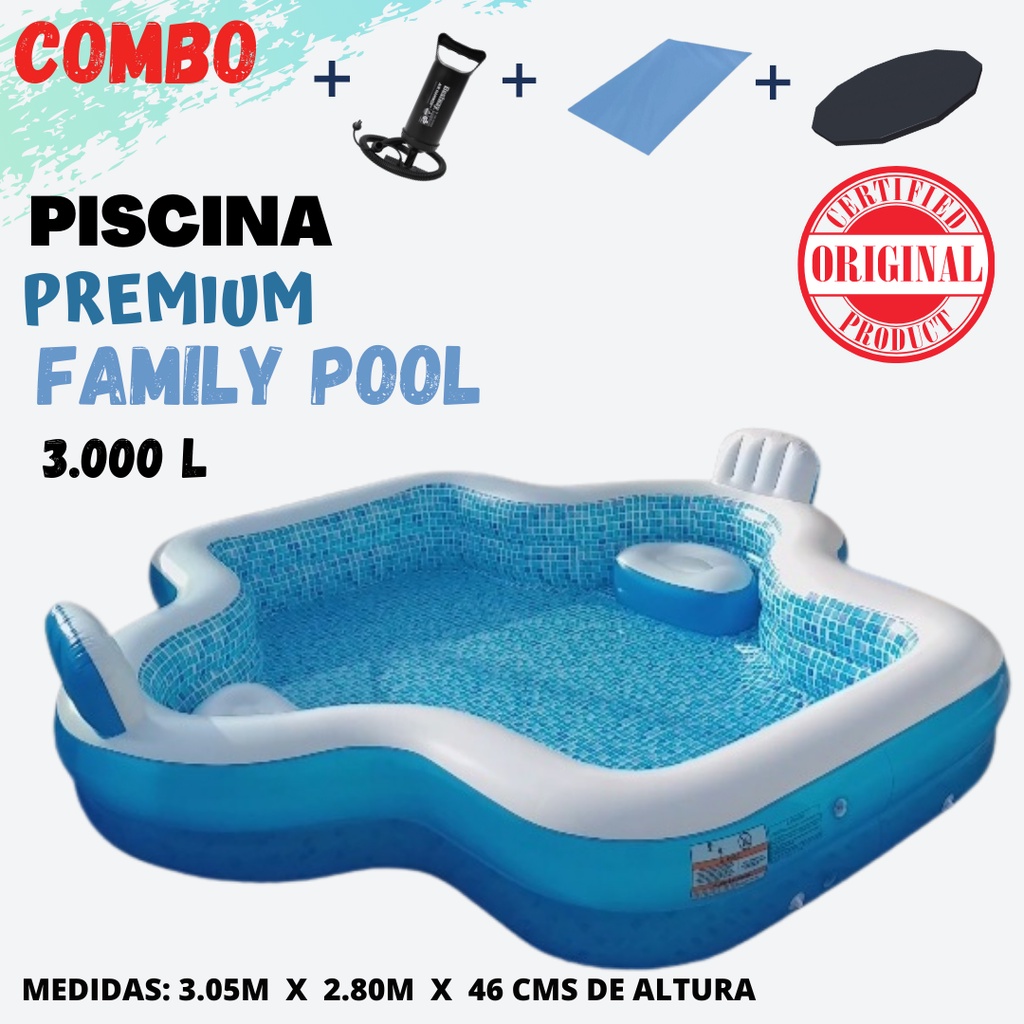 Piscina Premium Especial + Capa + Forro + Bomba de Ar c/ Assentos e Encosto 3.000 Litros - Original