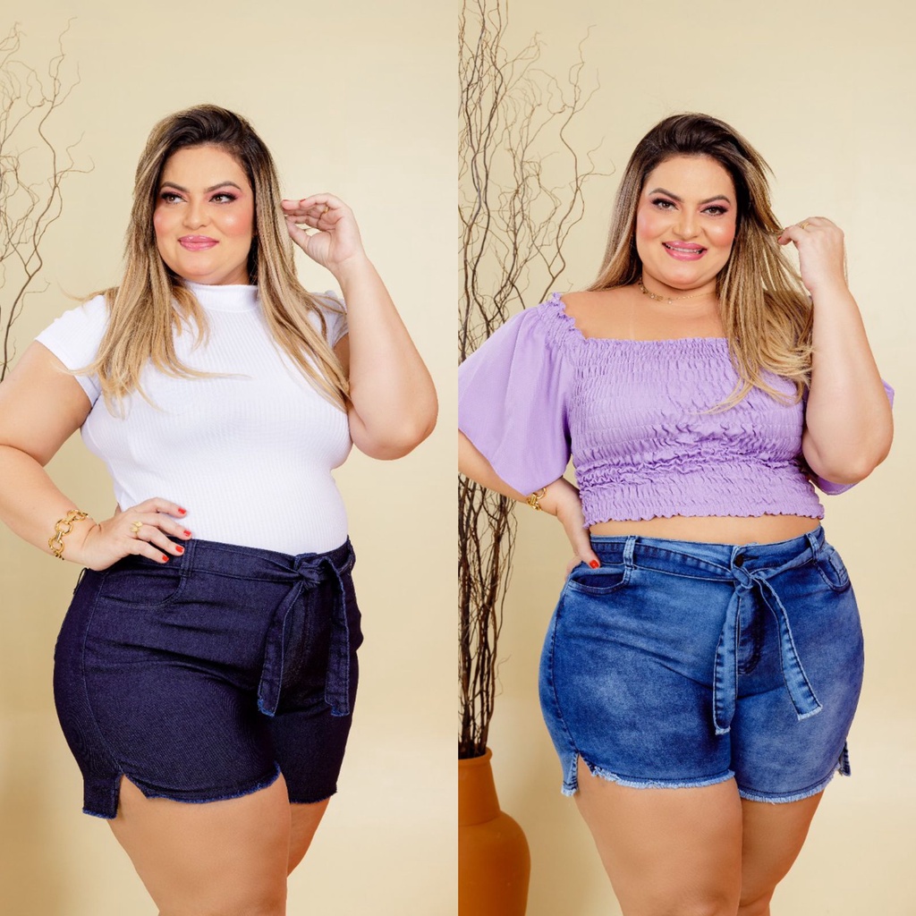 kit 2 shorts plus size jeans feminino com cinto lycra blogueira 2021