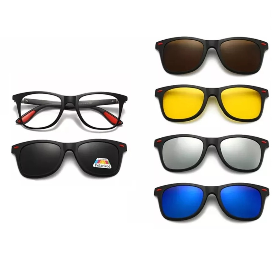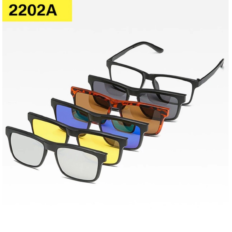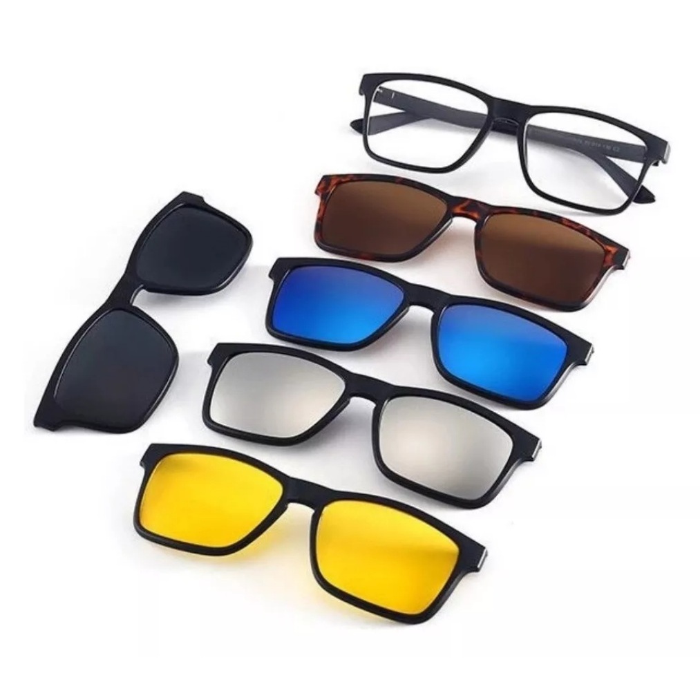 Armação e Óculos De Sol e Grau 6 Em 1 Clip On Multi Lentes Polarizado 2202A