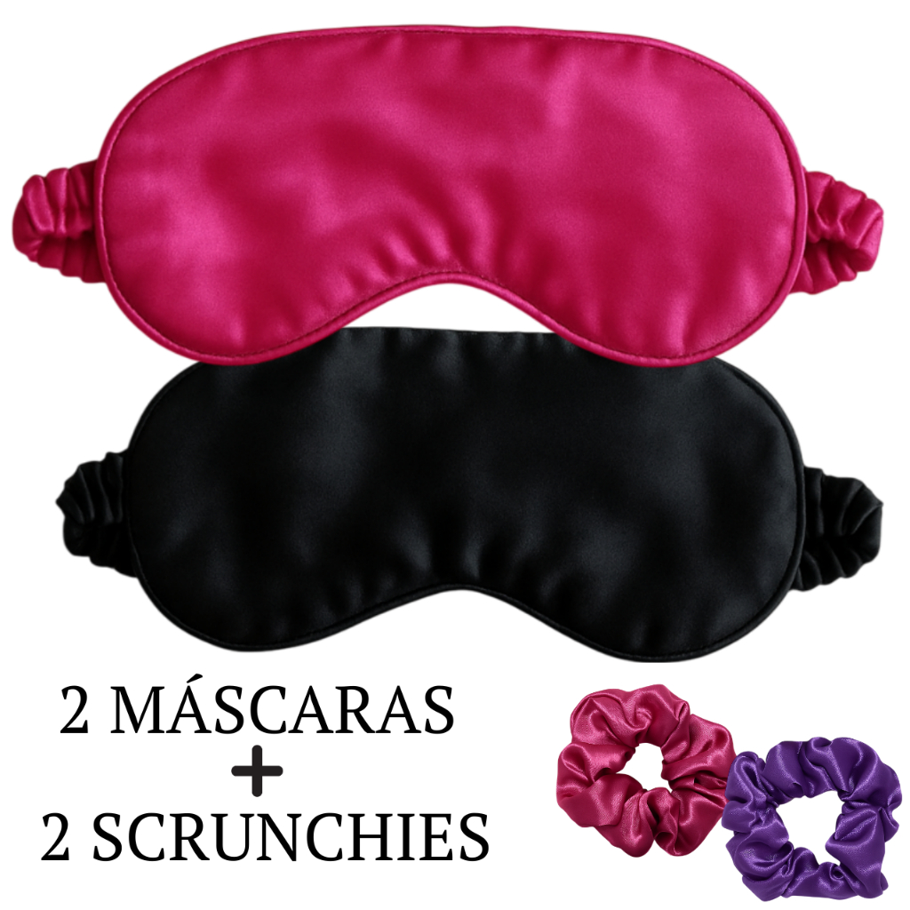 KIT 2 Mascara Tapa Olho de Dormir + 2 Scrunchie // Mascara de Descanso, Xuxinhas de cetim com cores lindas