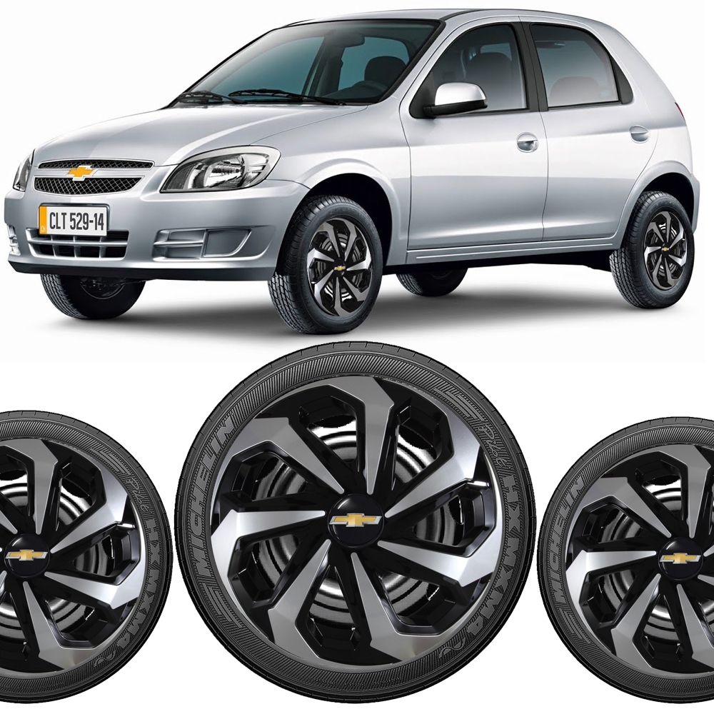 kit 4 Calota Aro 13 14 15 Chevrolet Celta Corsa Classic Corsinha Prisma