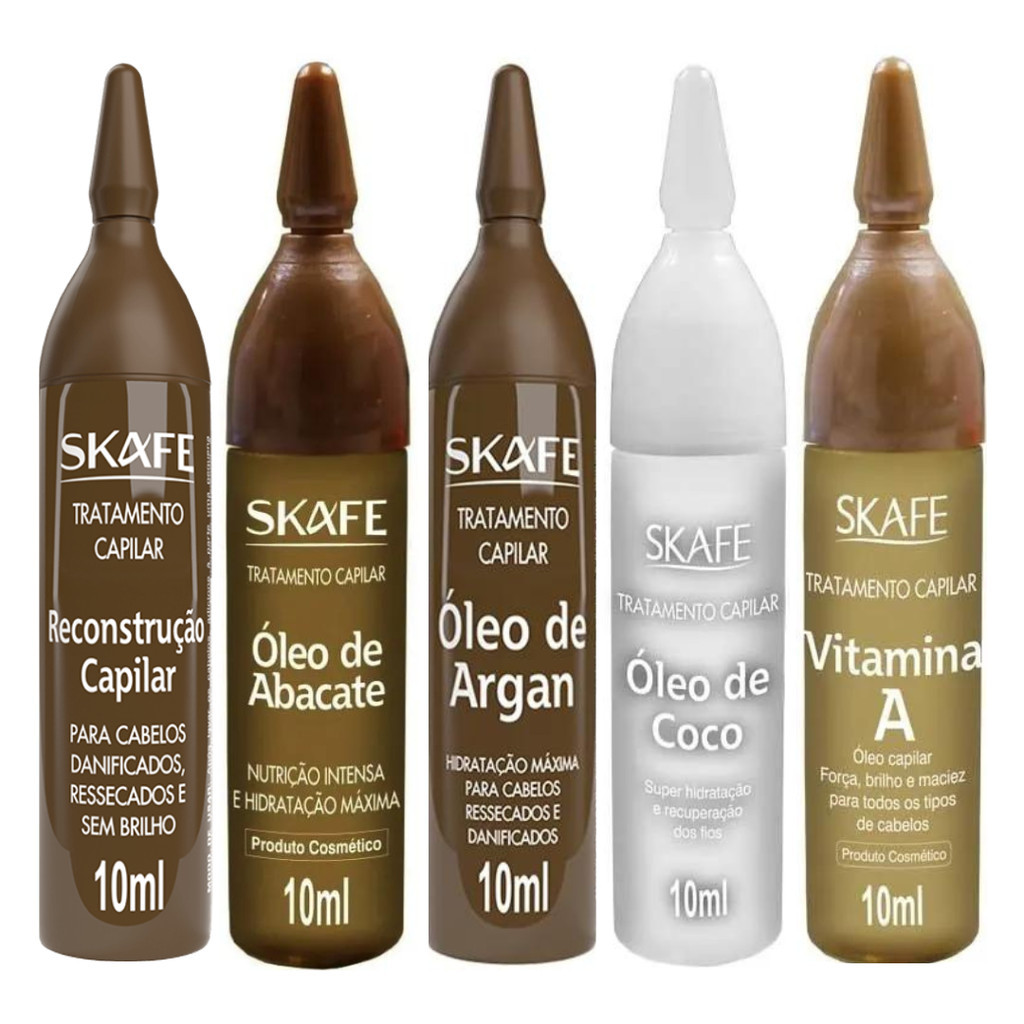 Kit 5 Ampola Capilar Skafe 10ml- Reconstrução, Óleo de Argan, Óleo de Coco, Óleo de Abacate e Vitamina A