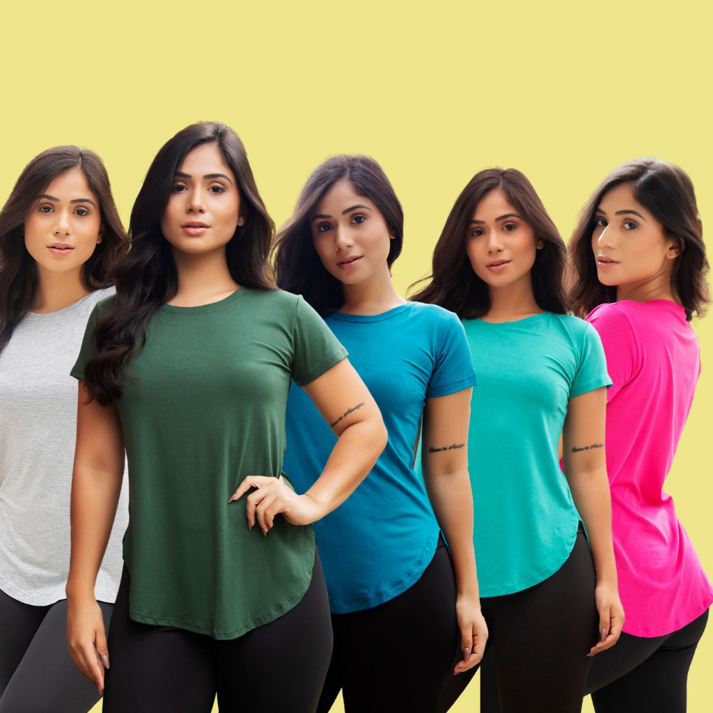 Kit 5 Blusas Fitness Feminina Tapa Bumbum Academia Sobre Legging Super Leve Dia a Dia Passeio
