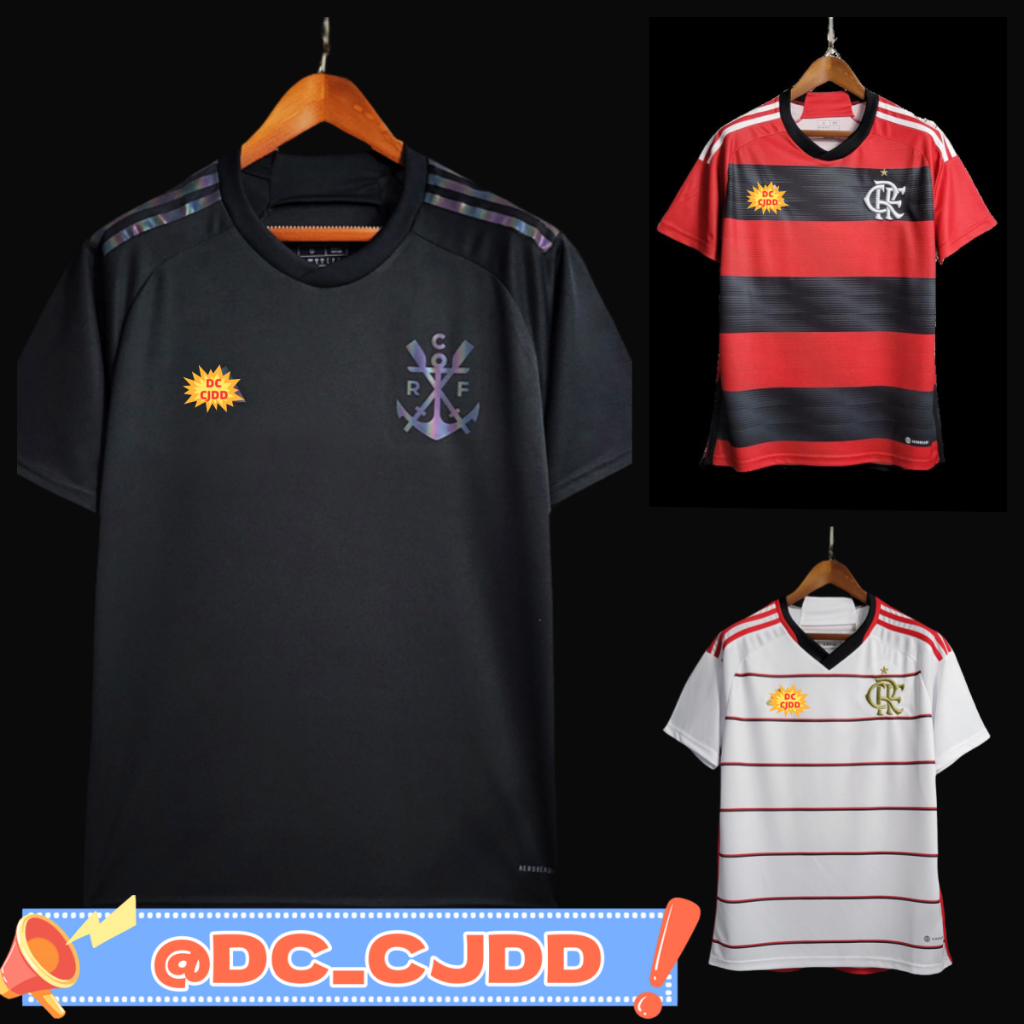 Camisa De Time Flamengo preta Branca Listrada 23/24 Home Football