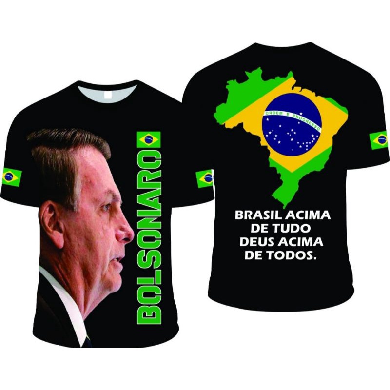 Camiseta De Tamanho Grande Pescoço o-neck Estampada 3D Masculina Bolsonaro Brasil Acima De Tudo Deus