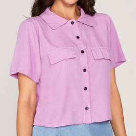 Blusa Feminina Cropped Camisa Social Botões Em Viscolinho verão 2022