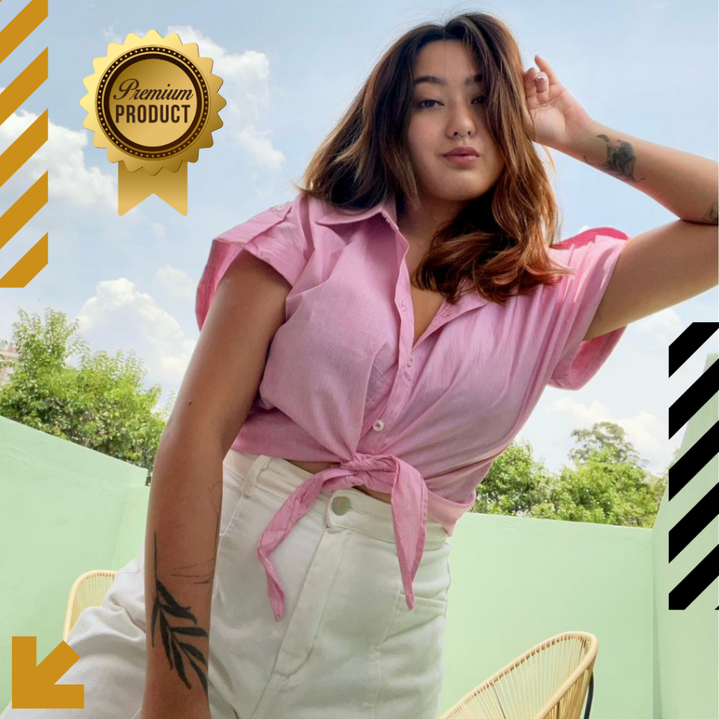 Cropped Blusa Feminina Premium Estilo Camisa Social