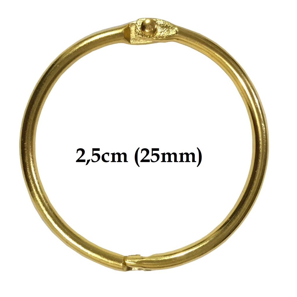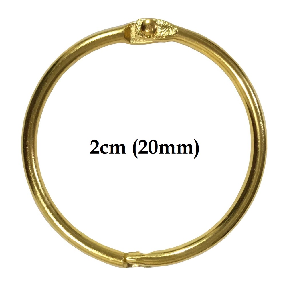 Pacote Com 20 Argolas Articulada Dourada Em Metal 2cm (20mm) para Encadernação/ Scrapbook/ Álbuns/ Cadernos/ Fichários/ Blocos de Notas
