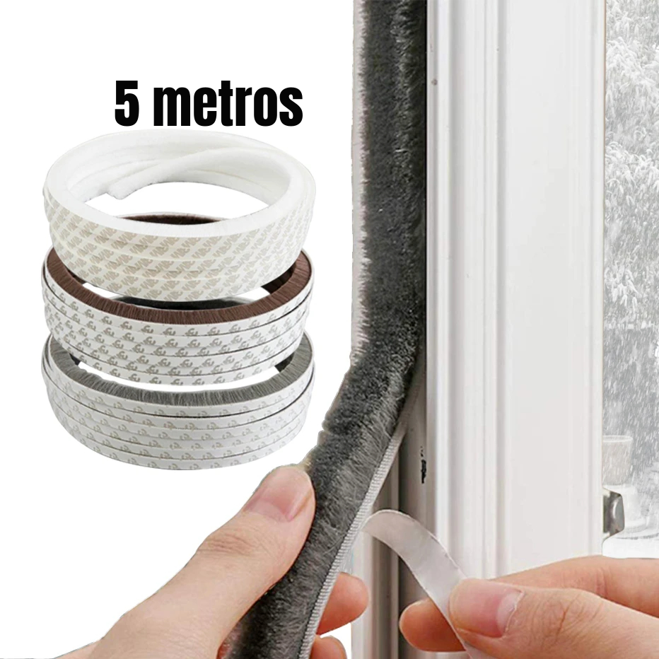 Fita Veda Fresta Escovinha de Vedação Escova Vedadora Adesiva Vedar Porta e Janela 5mts