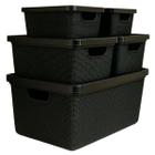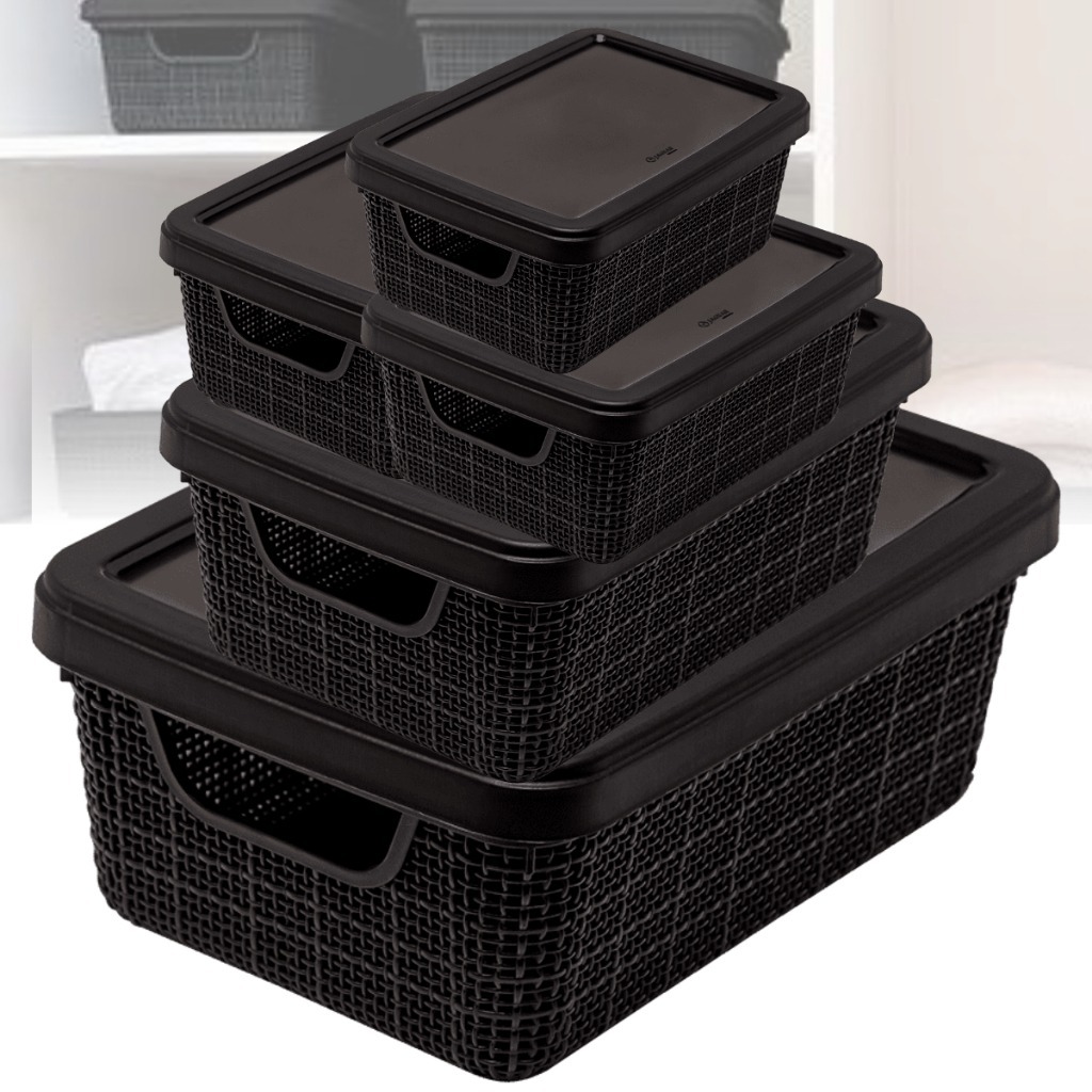Kit 5 Caixa Organizadora Cesto com tampa grande em plástico 2 / 6 / 16 L Preto